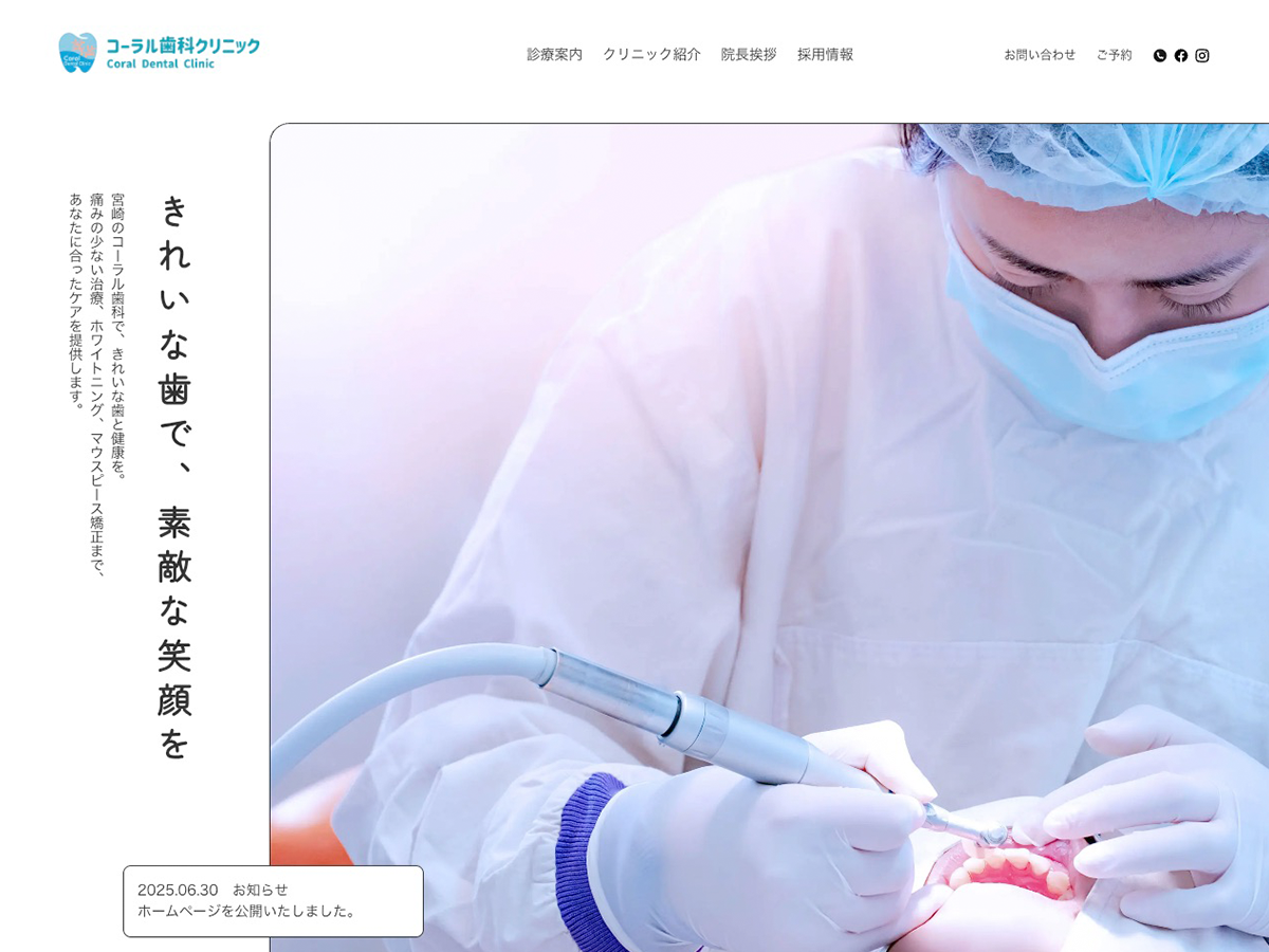 この度、コーラル歯科クリニックのホームページを公開いたしました。
